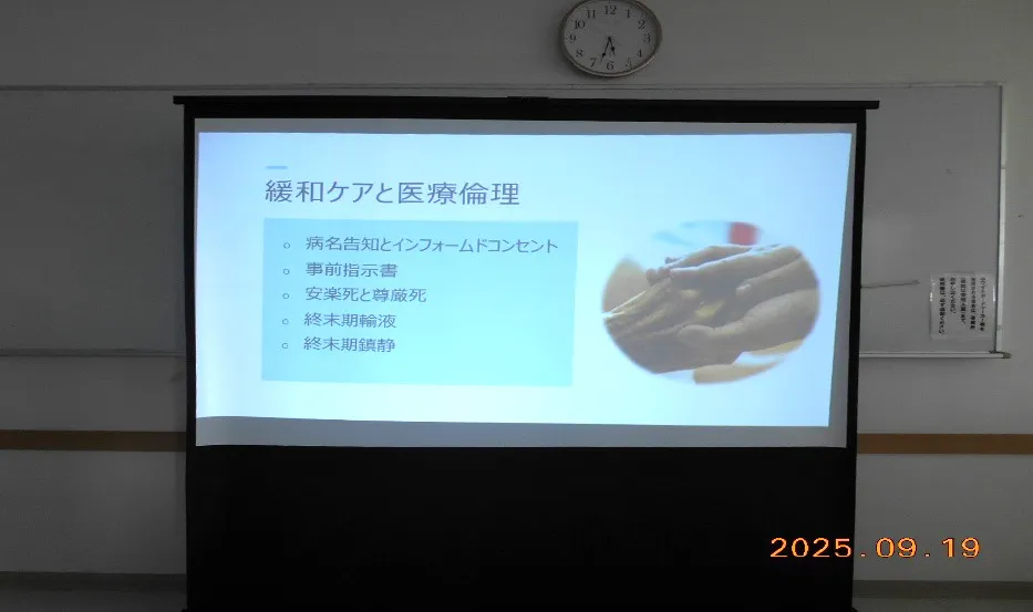 今回、緩和ケア認定看護師より倫理講和と7名が日々の成果を発表しました。